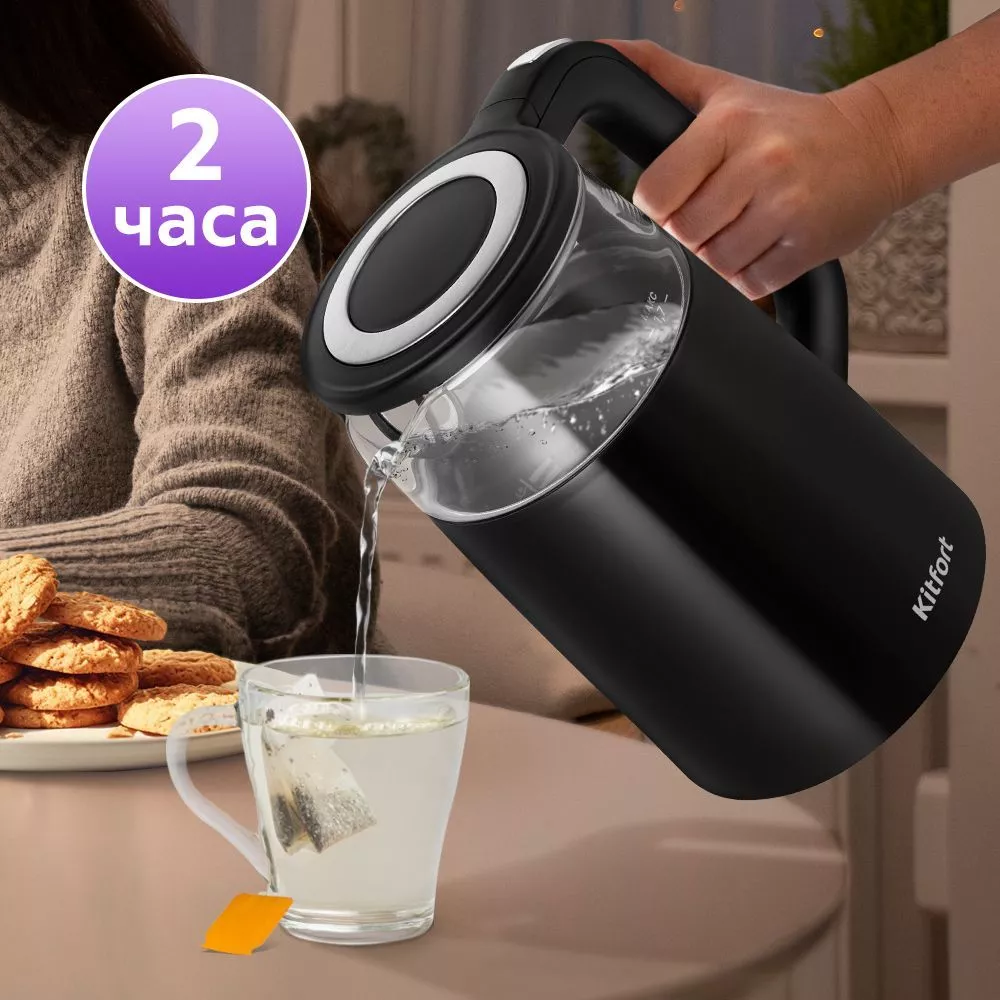 Чайник оснащён функцией поддержания температуры в течение 2 часов с выбором температуры от 40 до 95°C с шагом 5°C. Температура воды контролируется встроенным в дно чайника термодатчиком. КТ-6611 имеет большое горлышко, что облегчает доступ внутрь при мытье. В носике чайника расположен съёмный фильтр, который задерживает частички накипи и предотвращает их попадание в чашку.