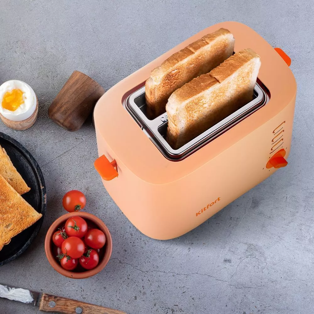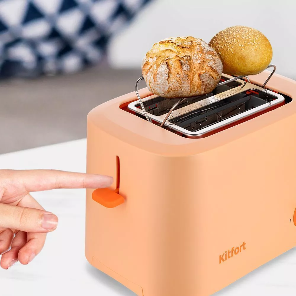 Загруженные тосты автоматически центрируются, чтобы их поджарка с двух сторон была равномерной. Ломтики хлеба должны свободно помещаться в слоты. Максимальная толщина тостов не должна превышать 1,5-2 см. По окончании приготовления тостер автоматически отключается, а тосты поднимаются вверх, чтобы их было удобнее извлечь. Механизм экстра-подъёма позволяет приподнять тосты ещё выше, если они небольшого размера.
