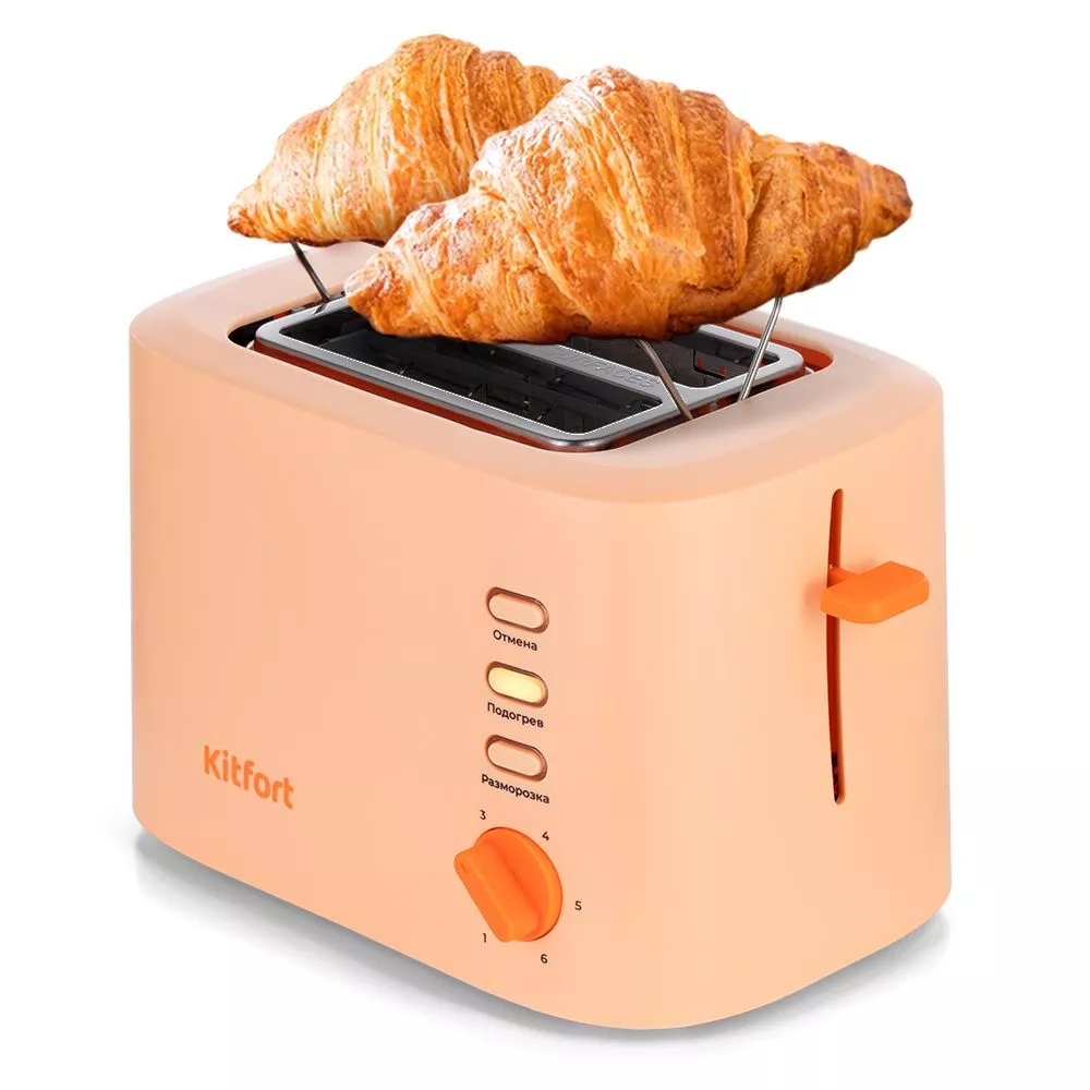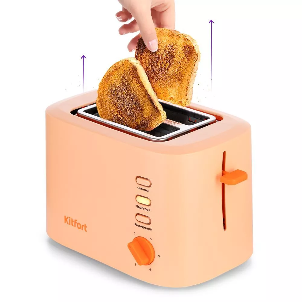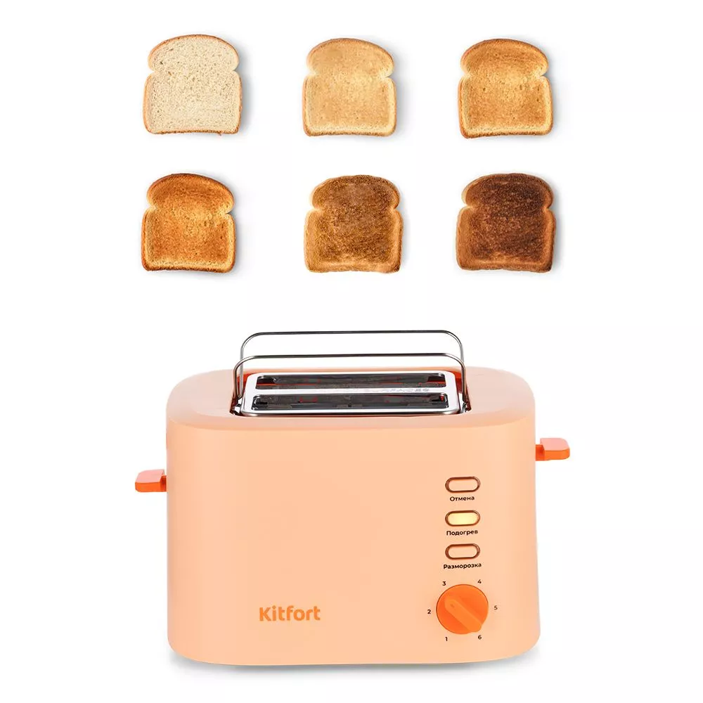Тостер оснащён регулятором с 6-ю степенями обжаривания, которые отличаются между собой временем обжарки. «Подогрев» служит для разогрева уже готовых тостов, если они остыли. «Разморозка» позволяет приготовить тосты из замороженного хлеба. В устройстве предусмотрены специальные держатели, на которые вы можете положить булочки, круассаны и другую выпечку, чтобы подогреть её. Опустите рычаг, и держатели поднимутся над слотами для тостов, поднимите рычаг – держатели опустятся в корпус тостера.