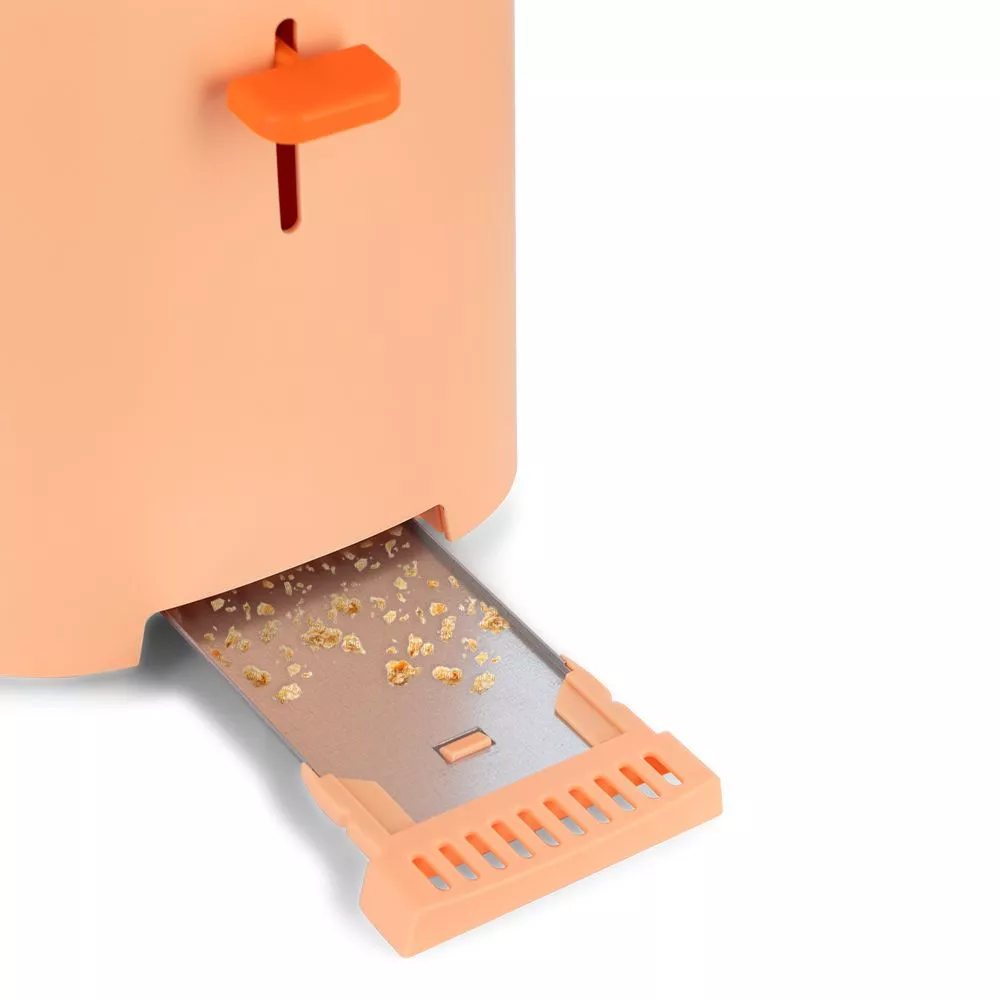 В нижней части корпуса тостера расположен съёмный поддон для сбора крошек. Просто выдвиньте его и выбросите скопившиеся крошки, а остатки протрите салфеткой. На дне корпуса тостера имеется отсек для хранения шнура, в который можно смотать излишки шнура электропитания, чтобы он не мешал на столе.