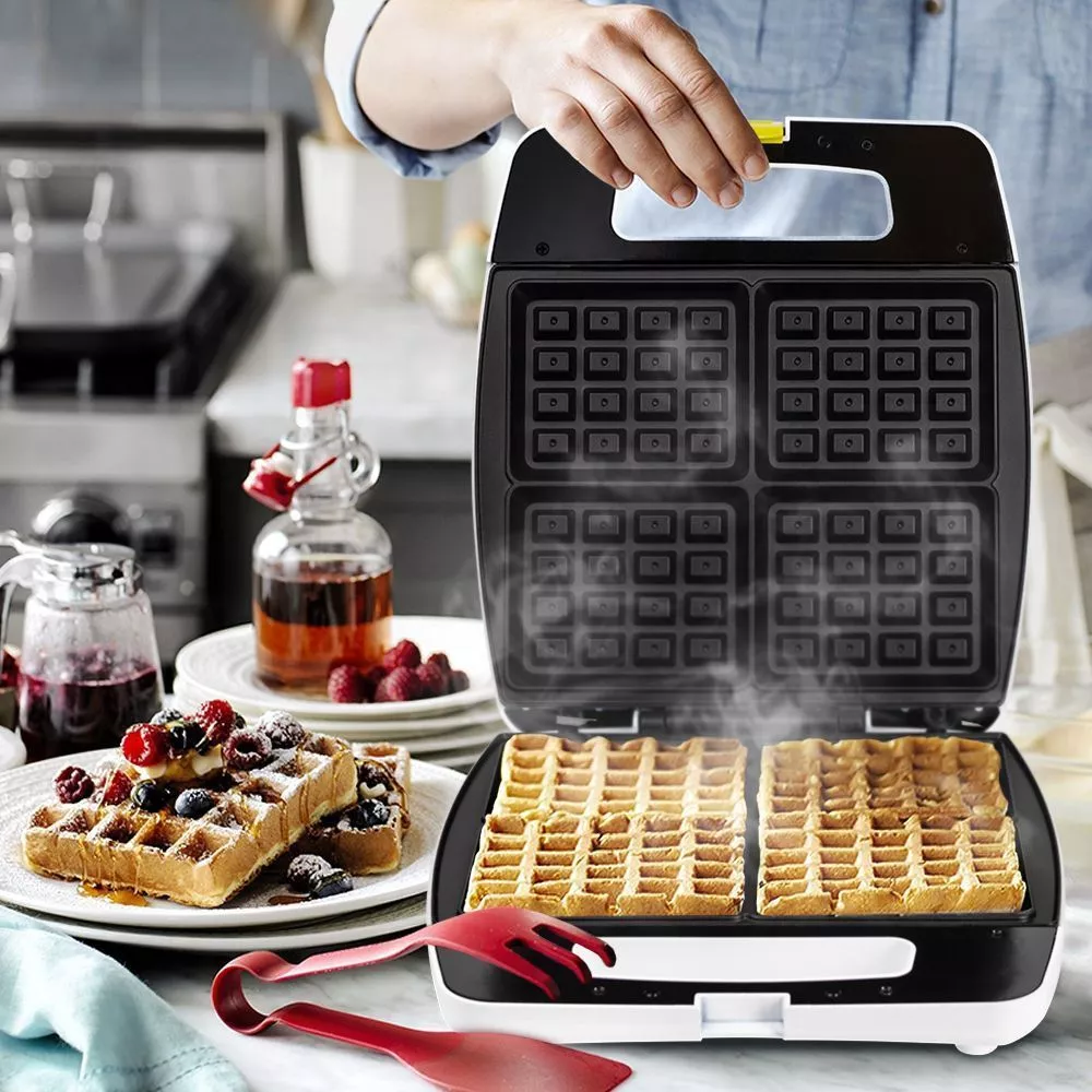 Вафельница оснащена индикатором питания, термостатом для поддержания температуры панелей и индикатором нагрева, который покажет, когда панели разогреются. В вафельнице установлены нагреватели в каждой половине, так вафли пропекаются равномерно.