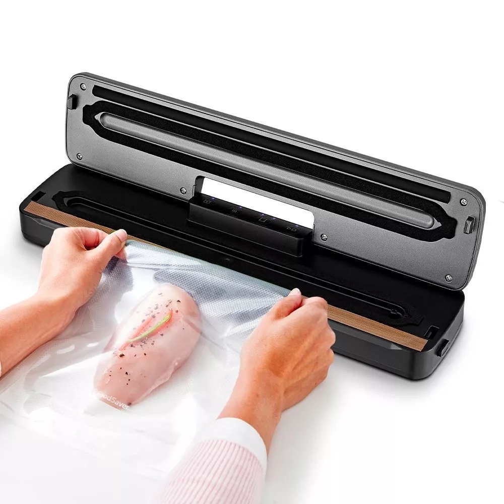 Устройством очень легко пользоваться. Открытый край пакета укладывается под крышку прибора, после чего вакууматор начинает выкачивать из него воздух. В результате образования вакуума пакет плотно обжимает содержимое. Как только воздух удалён, начинается запечатка открытой стороны пакета.