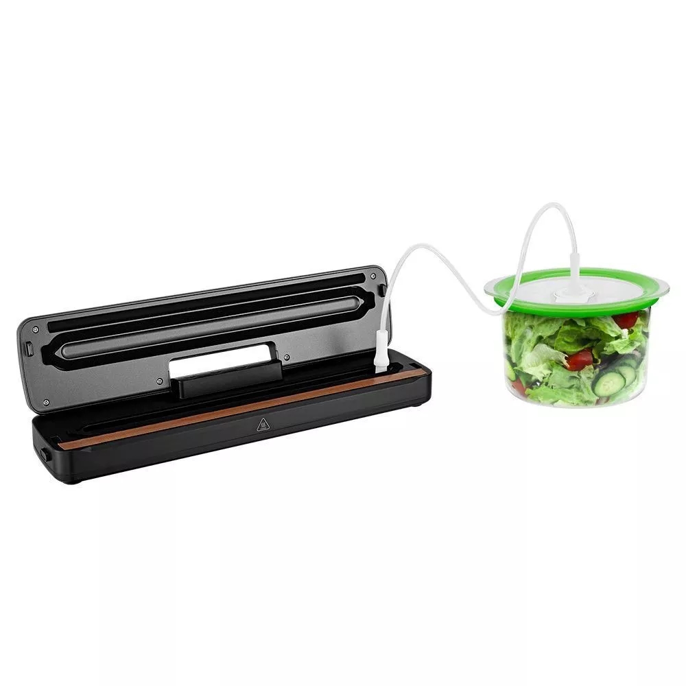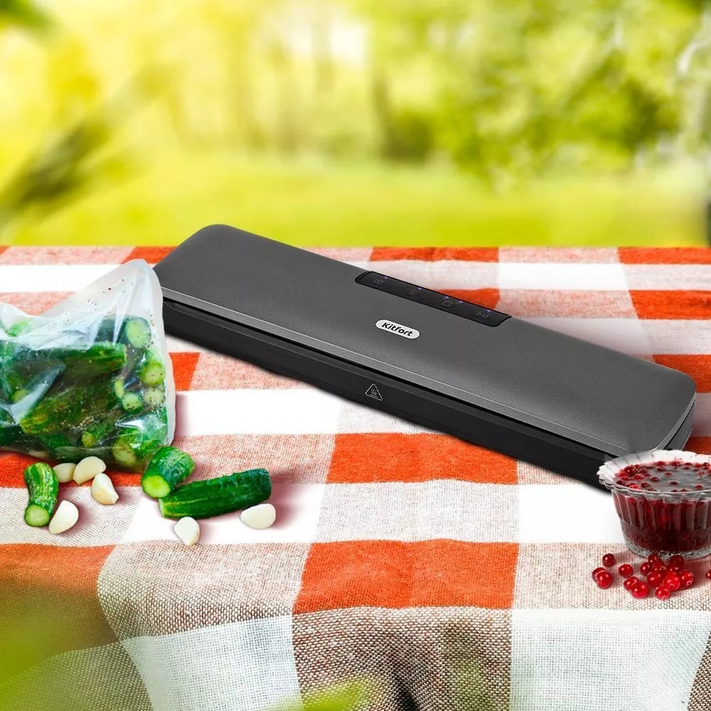 В комплектации с вакууматором идёт дополнительно шнур для откачки воздуха из контейнеров. Набор контейнеров для вакууматоров KT-1500-11 вы можете приобрести отдельно.