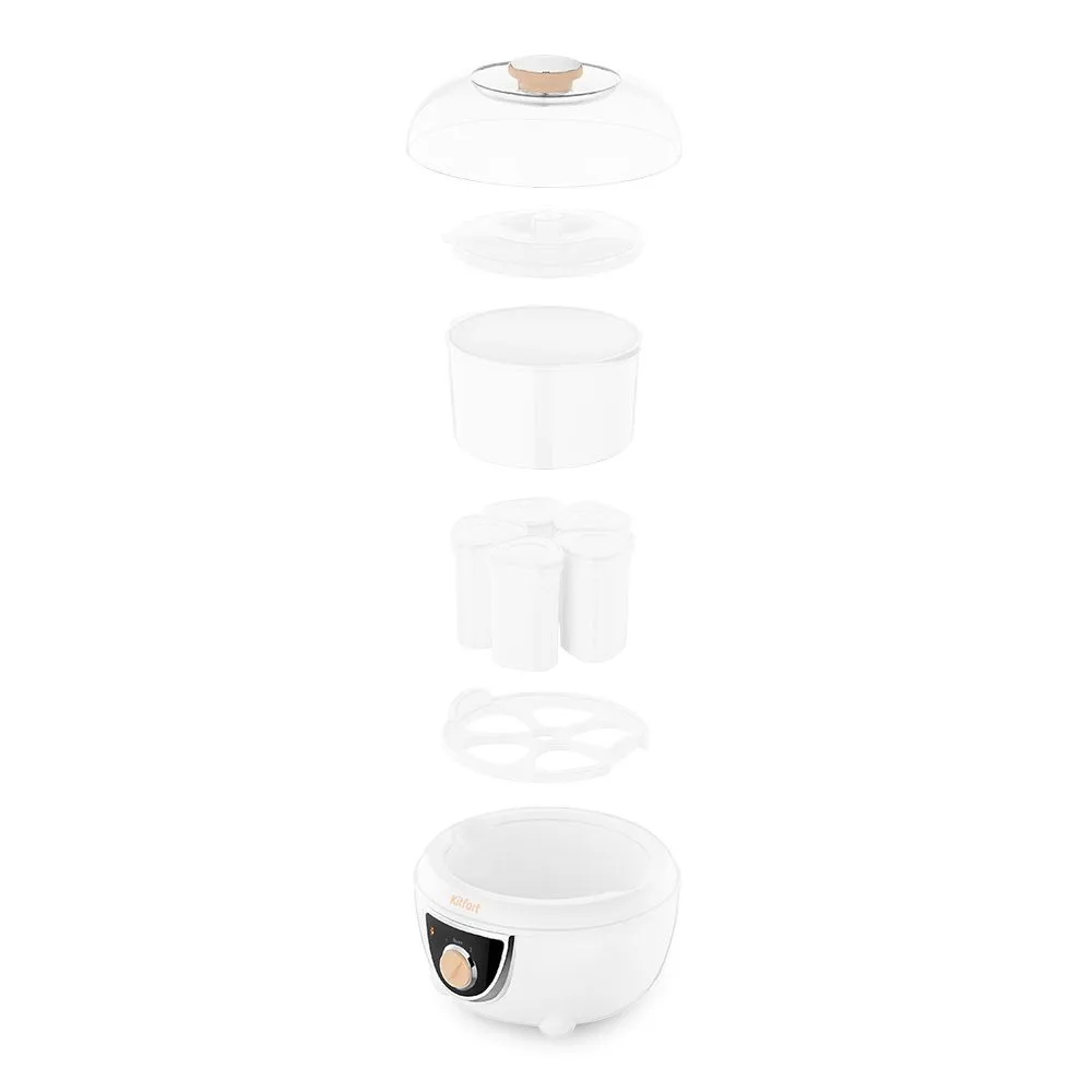 Конструкция йогуртницы разборная, что значительно облегчает процесс ухода за устройством, а также его хранение.