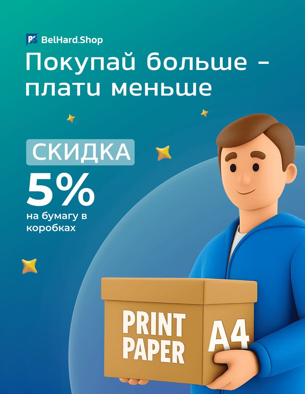Покупай больше - плати меньше: скидка 5% на офисную бумагу в коробках